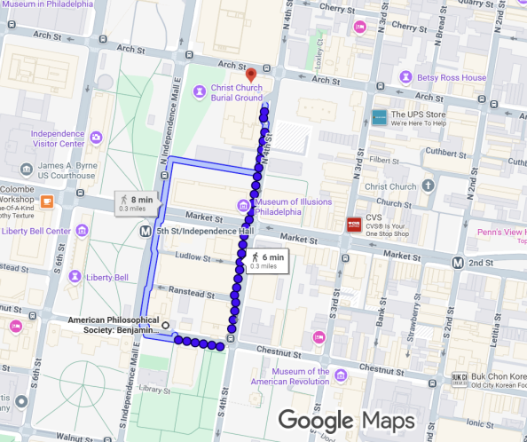 The Renaissance Hotel and the Kimpton Monaco Hotel are located just steps from Benjamin Franklin Hall, where the Symposium will take place. The Wyndham is .3 miles and takes about 6 minutes to walk.